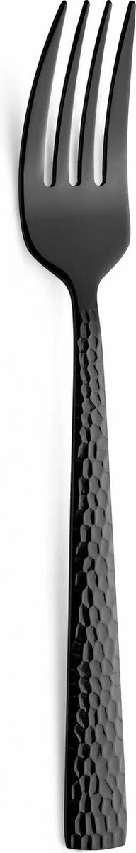 Felicity brengt het gevoel van eigentijds handwerk op tafel door de grove, gehamerde decoratie op het heft. De combinatie van een hoogglans afwerking met een stoere zwarte kleur geeft een stijlvolle en moderne twist aan elke tafelsetting. De gehamerde afwerking op de hendel zorgt voor een mooie reflectie op het bestek waarbij de glans perfect tot zijn recht komt.