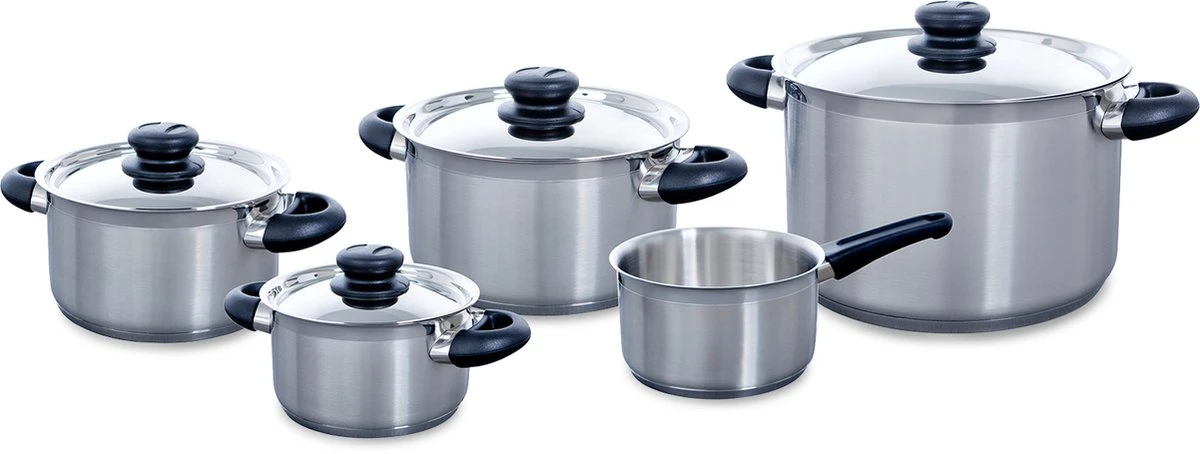 De BK+ Karaat Pannenset bestaat uit vijf pannen. Met de vier kookpannen kan jij makkelijk en snel pasta, rijst, aardappelen of groenten koken. Het kleine steelpannetje kan je gebruiken om lekkere sauzen in klaar te maken. Alle pannen zijn te reinigen in de vaatwasmachine.