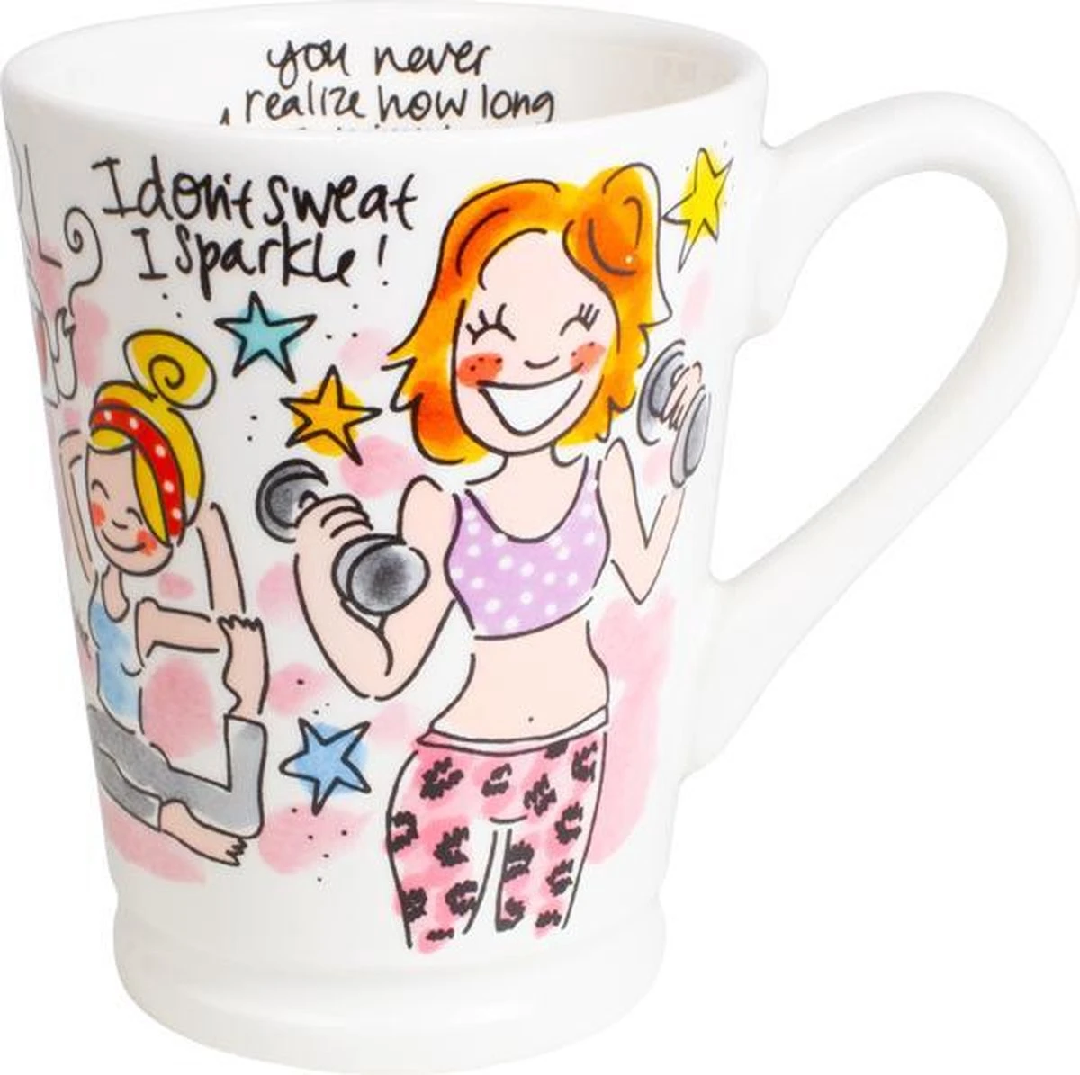 Deze XL beker hoort bij de collectie favorite things. Waarbij deze favorite beker in het thema van sportiviteit en fit girl staat. Op deze beker staan tekeningen en quotes die te maken hebben met een echte fit girl. Herken jij jezelf hierin of ken je iemand aan die je graag deze mok zou willen geven? Deze sportieve mok zorgt zelfs voor een sportief thee momentje.