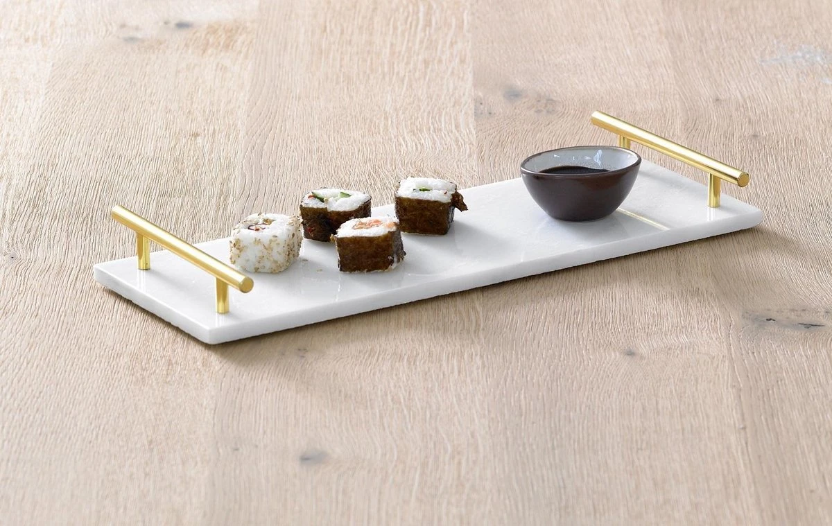 Cosy & Trendy Dienblad Marmer Serveer uw hapjes en drankjes op het Cosy & Trendy dienblad marmer. Met dit dienblad serveer je hapjes in stijl. Het dienblad is gemaakt van marmer en heeft de afmetingen 40 x 14 cm. Wij raden aan na gebruik het dienblad schoon te maken met warm water, een vochtig doekje en mild reinigingsmiddel.