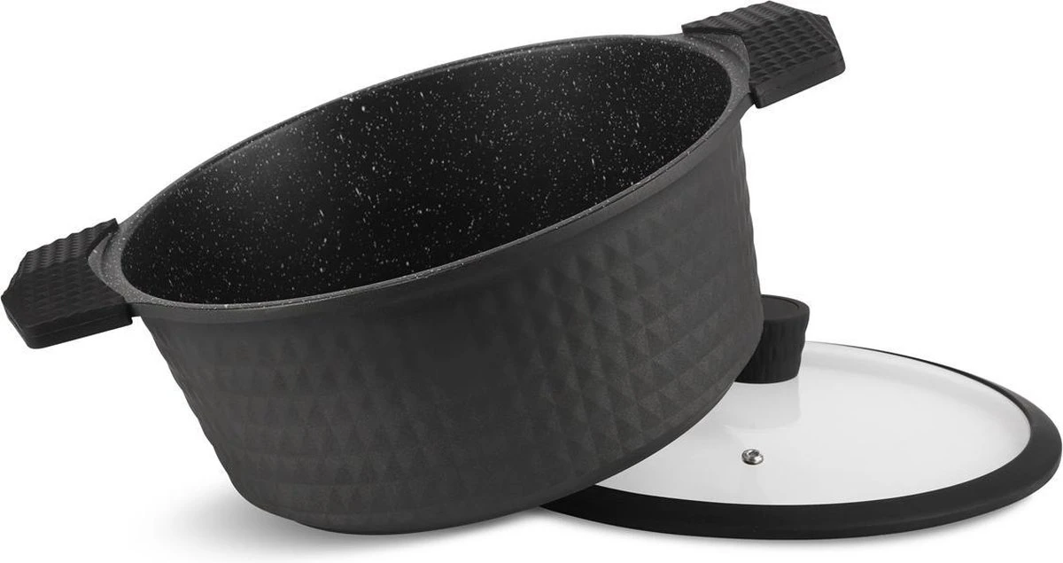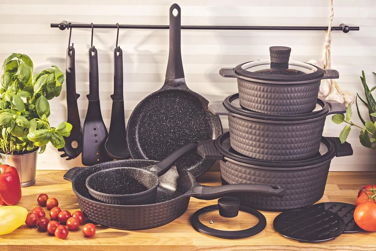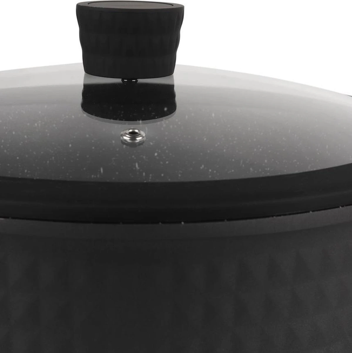 Deze prachtige pannenset van Edënbërg wordt geproduceerd onder de strengste Duitse normen en met het beste aluminium. De bodem is bedekt met maar liefst 3 lagen marmer met een mooie zwarte binnenkant die niet verkleurd. Dankzij de dikke bodem zijn de pannen zeer duurzaam en wordt het eten gelijkmatig verwarmd.