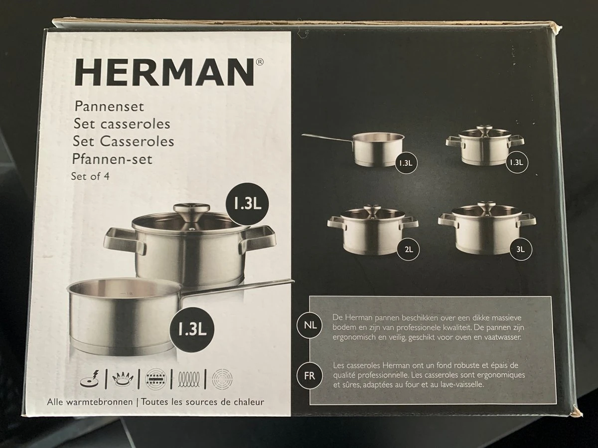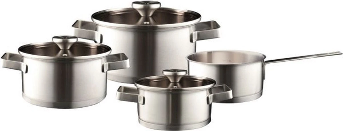 Deze 4-delige RVS pannenserie van Herman den Blijker bestaat uit: