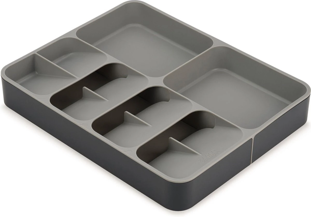 Met deze bestek organizer van Joseph Joseph is de vraag ‘hoe deel ik mijn besteklade overzichtelijk in’ beantwoord. Omdat de bestekbak uitschuifbaar is kun je zelf een besteklade indeling maken. Bespaar ruimte door je bestek boven elkaar te stapelen in de daarvoor bedoelde vakjes. Schuif de twee compartimenten uit om nog meer ruimte in je lade te creëren voor groter keukengerei zoals een broodmes en een spatel. In de DrawerStore collectie vind je nog meer handige organizers voor een mooie indeling van je besteklade.
