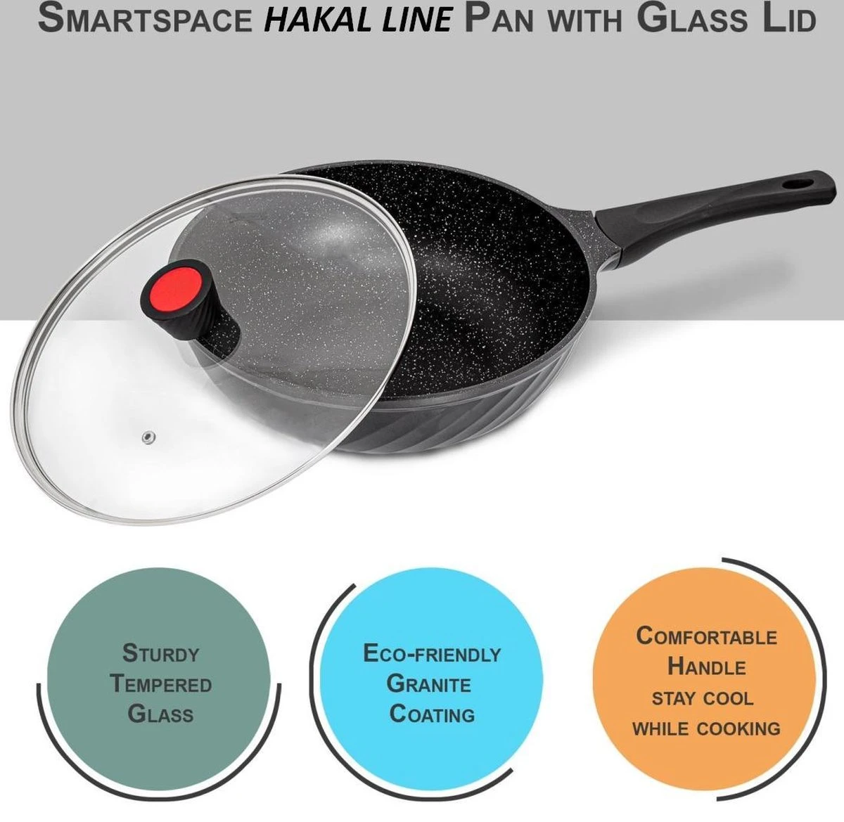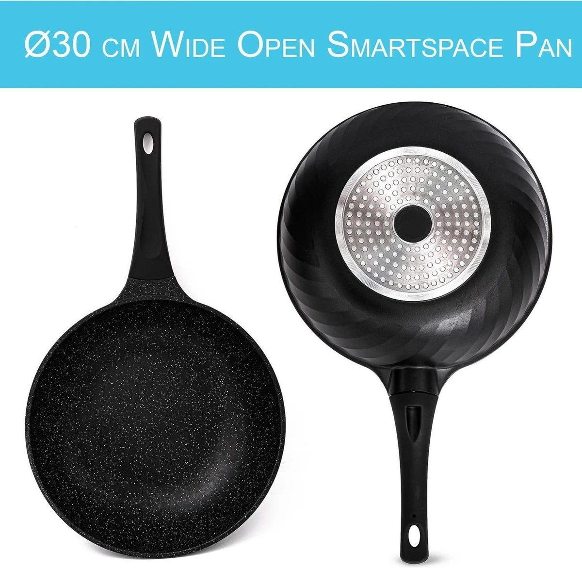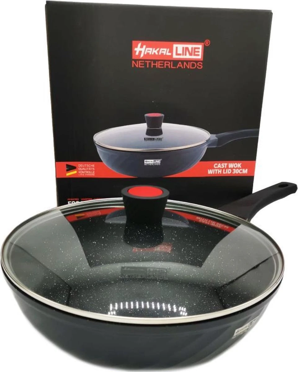 Marble Coating Wokpan Inductie – Met Glazen Deksel – Zwart – 30 Cm