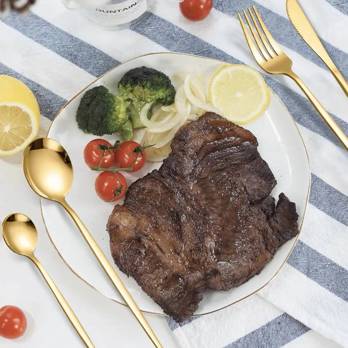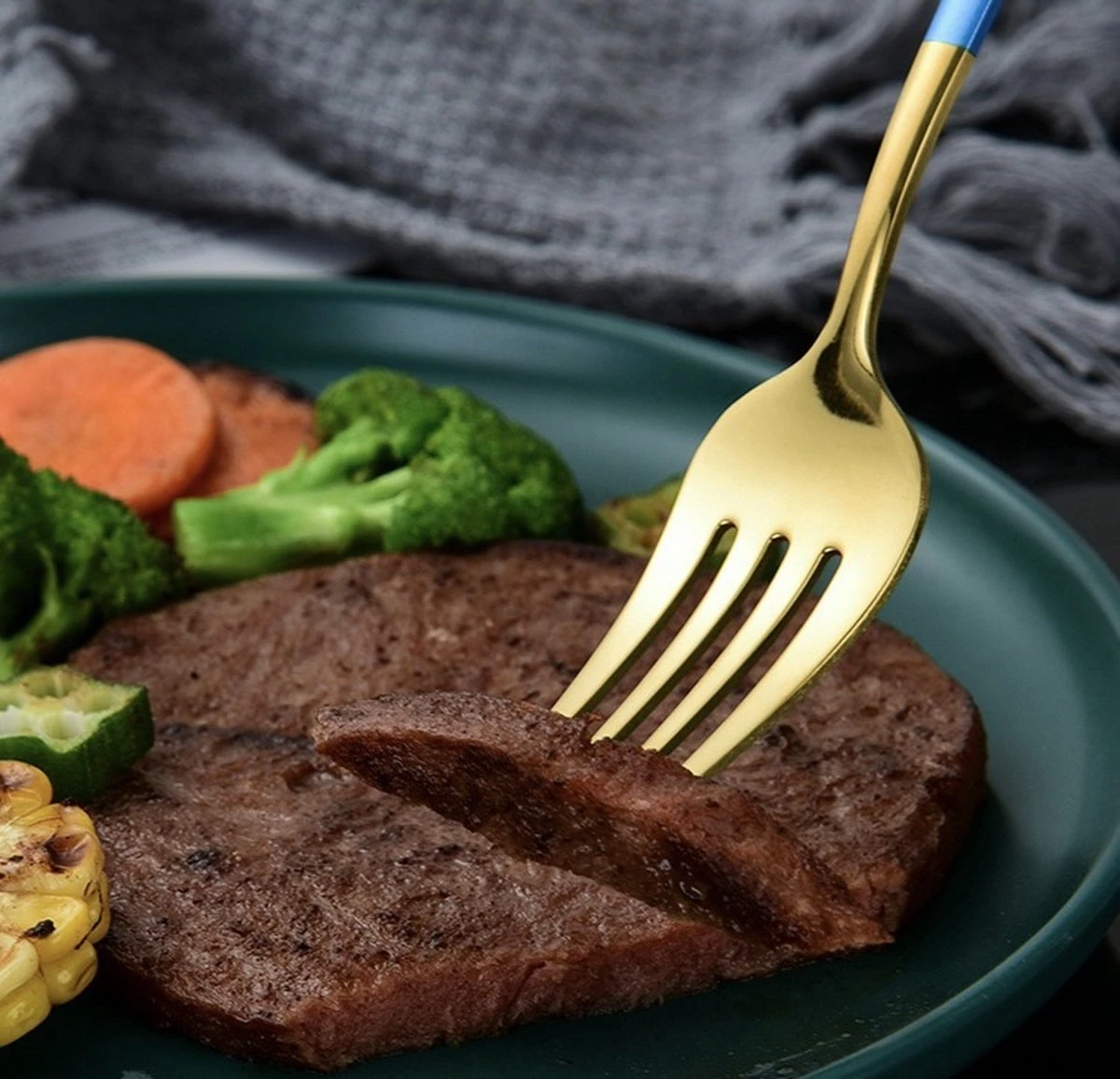 Merkloos Bestekset – 24 Delig Bestekset – 6 Personen – Rood/Goud – Tafellepels/Tafelmessen/Tafelvorken/Koffielepels – Roestvrij Staal