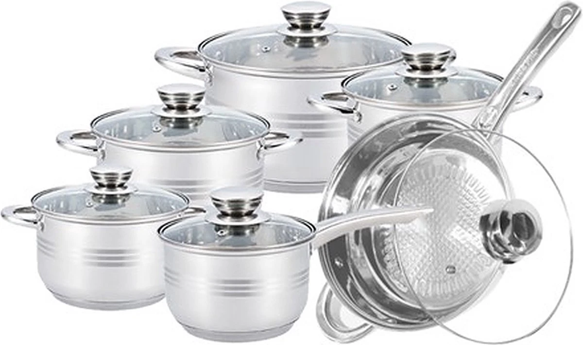 Pannenset 13 Delig – RVS – Pan / Steelpan / Koekenpan – Met Glazen Deksels – Inductie – PFAS-vrij