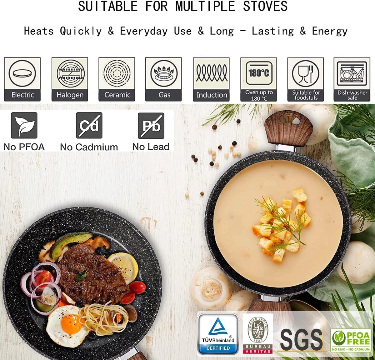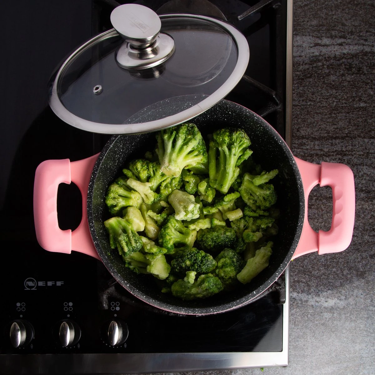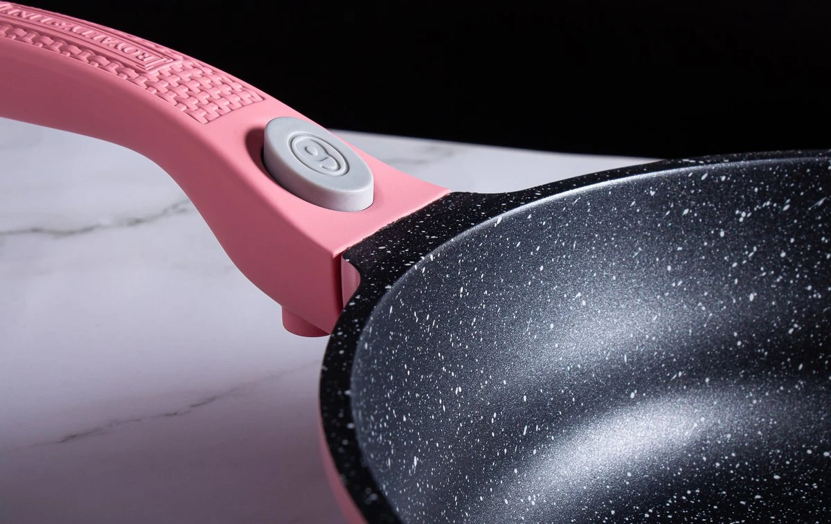 Royalty Line Inductie Pannenset – Luxe 14-delige Pannenset Marmeren Coating – Pannen Met Afneembare Handvaten – Oven-Ready – PFAS-Vrij – Voor Alle Warmtebronnen – Afneembare Koudgrepen – Antiaanbaklaag – Koekenpan Met Glazen Deksels – Roze