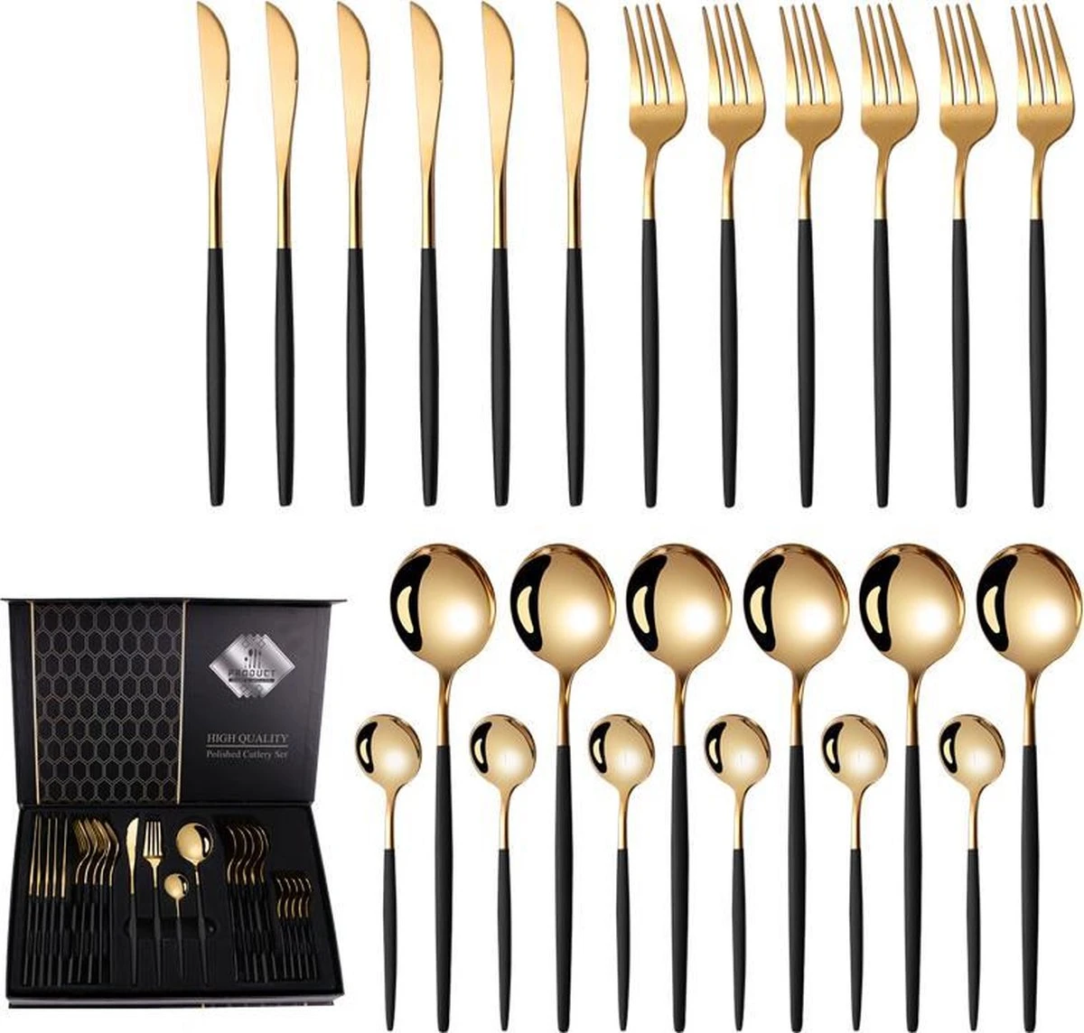 Timmers Trading© Bestekset 6 persoons – Gouden bestek – Bestekset goud 24 delig – Vaatwasserbestendig